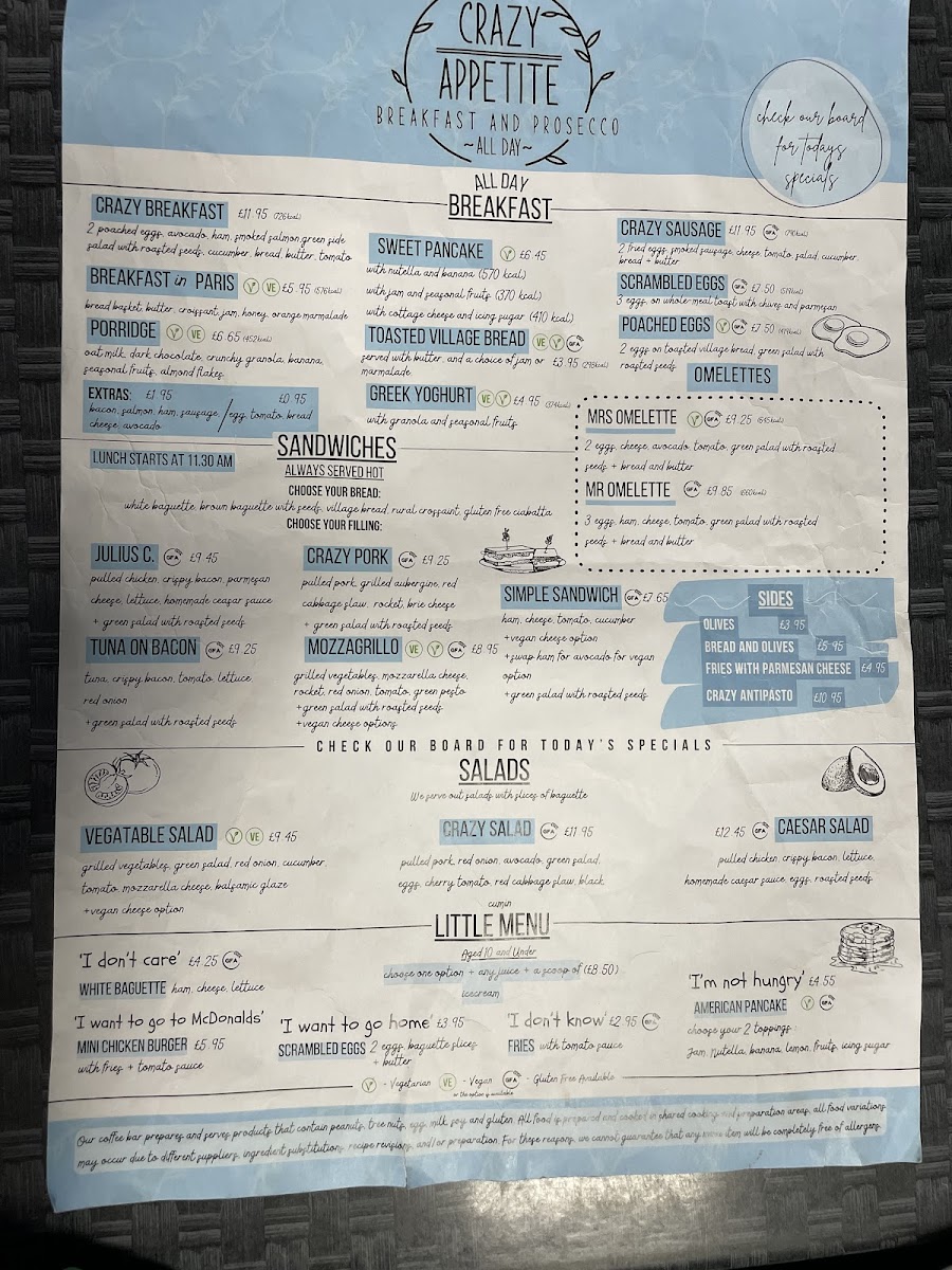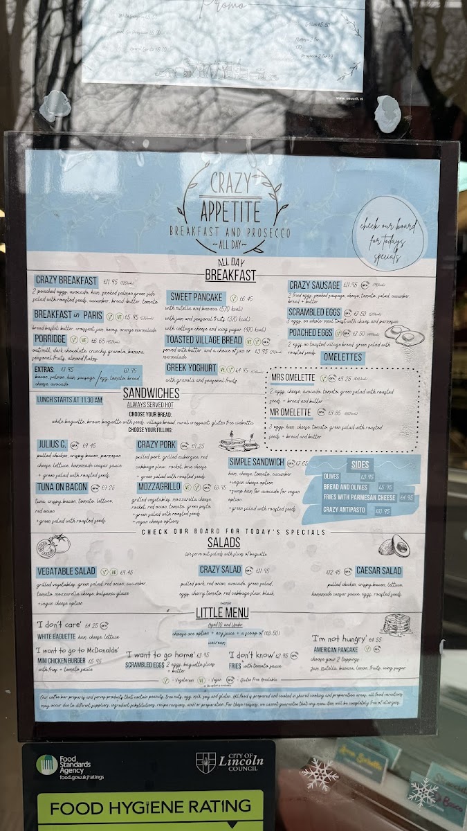 Introducing the menu at Crazy Appetite, a charming eatery nestled in the heart of Lincoln. This cozy spot specializes in vibrant, fresh dishes that cater to all-day dining. Their All Day Breakfast shines with offerings like Sweet Pancakes, Toasted Village Bread, and perfectly cooked Poached or Scrambled Eggs, complemented by their signature Crazy Sausage. For lighter yet satisfying options, the menu features inventive sandwiches such as the Julius C and Tuna on Bacon, both praised for their bold flavors and quality ingredients.